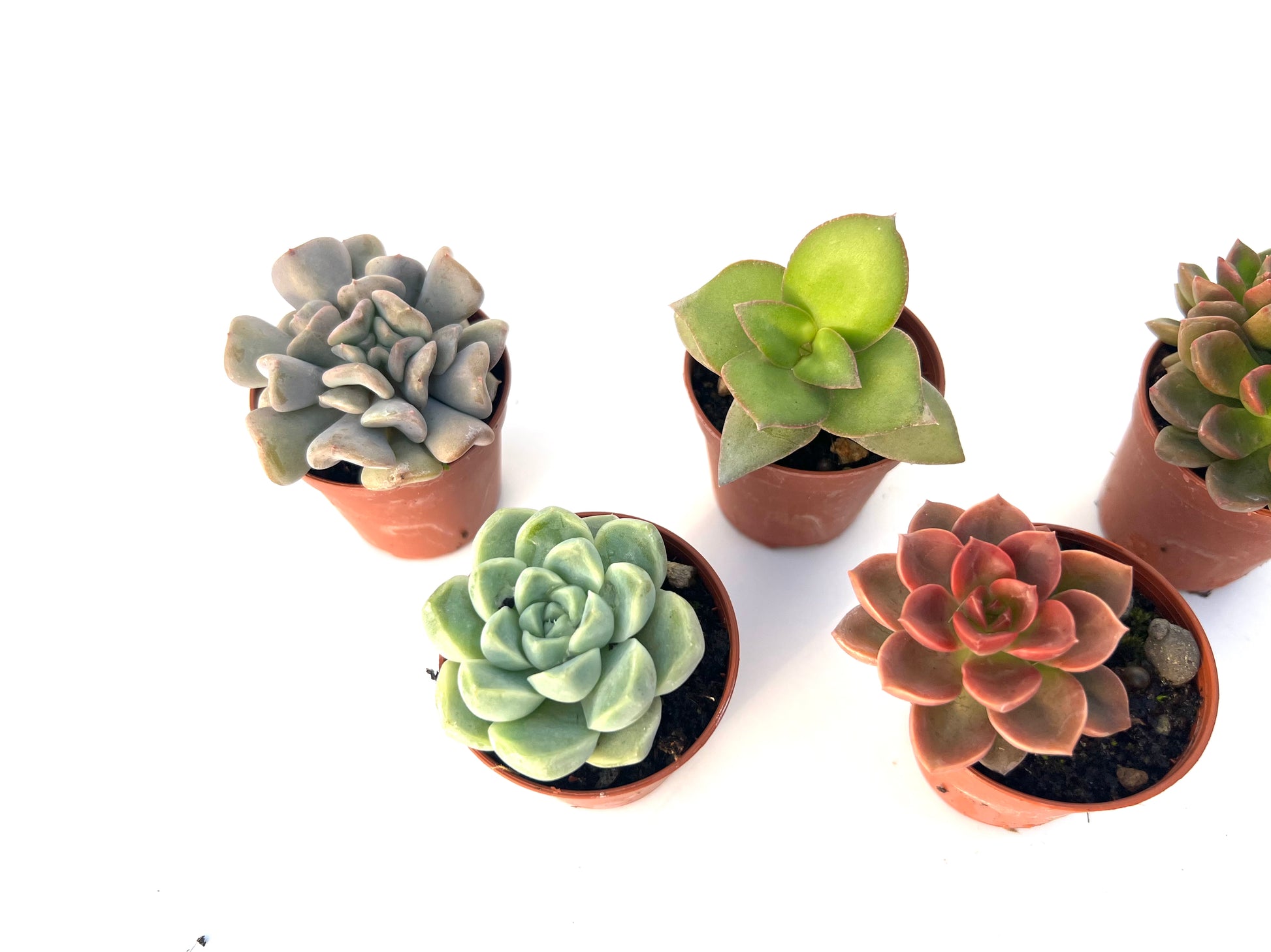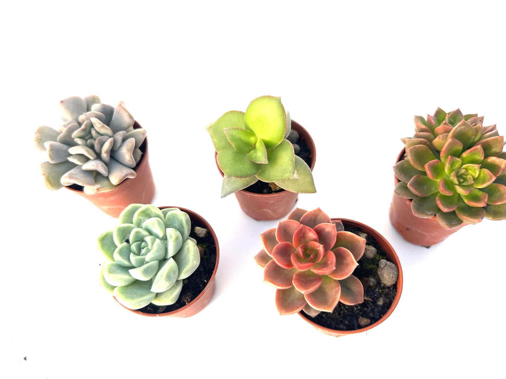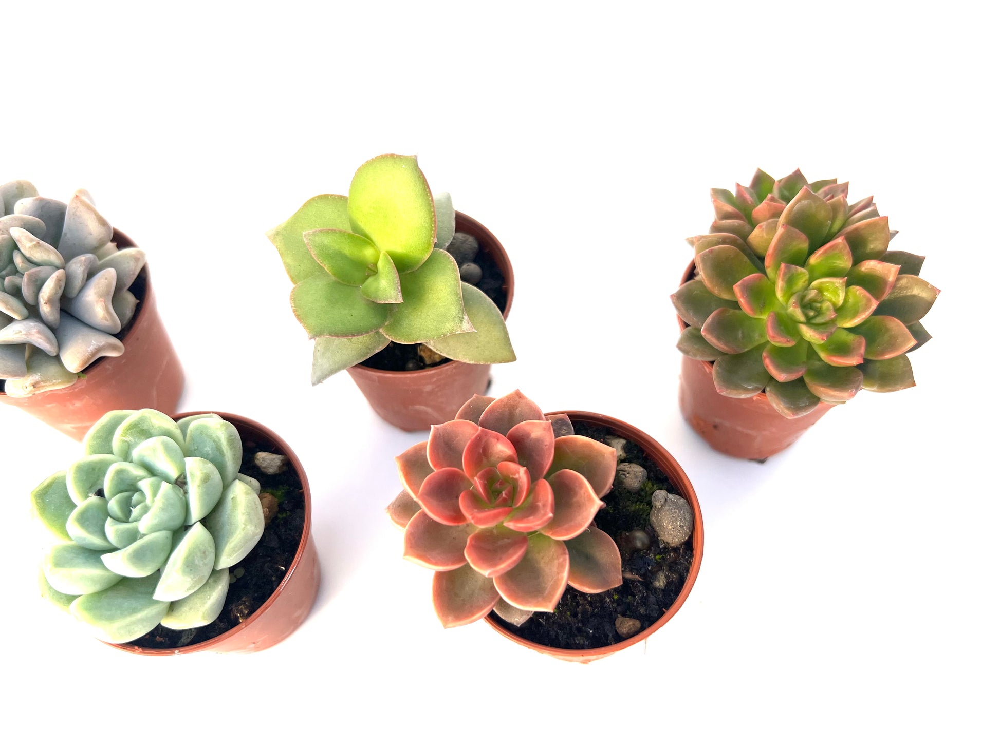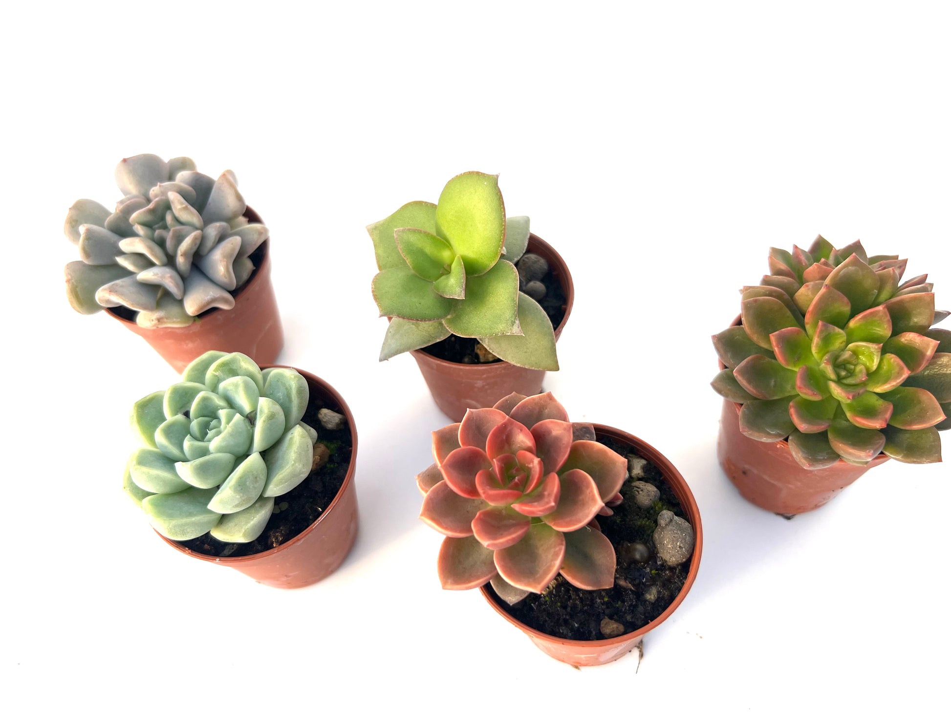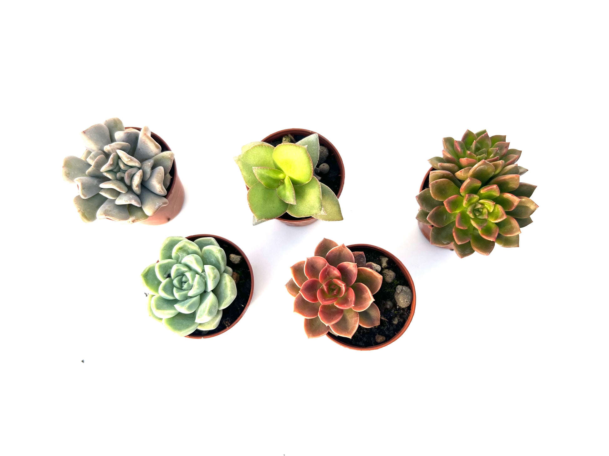 5 suculentas variadas, elegidas al azar según disponibilidad, siempre de calidad premium y bien enraizadas.
